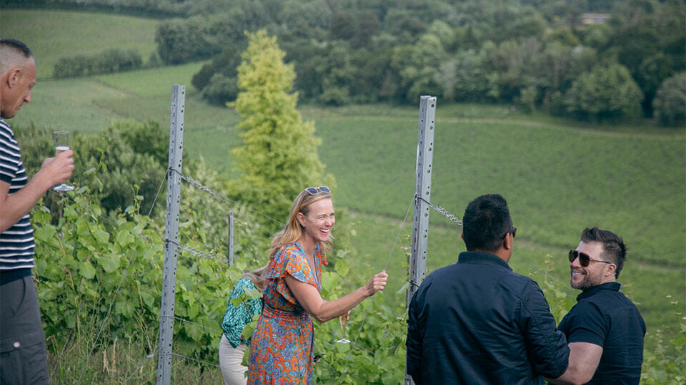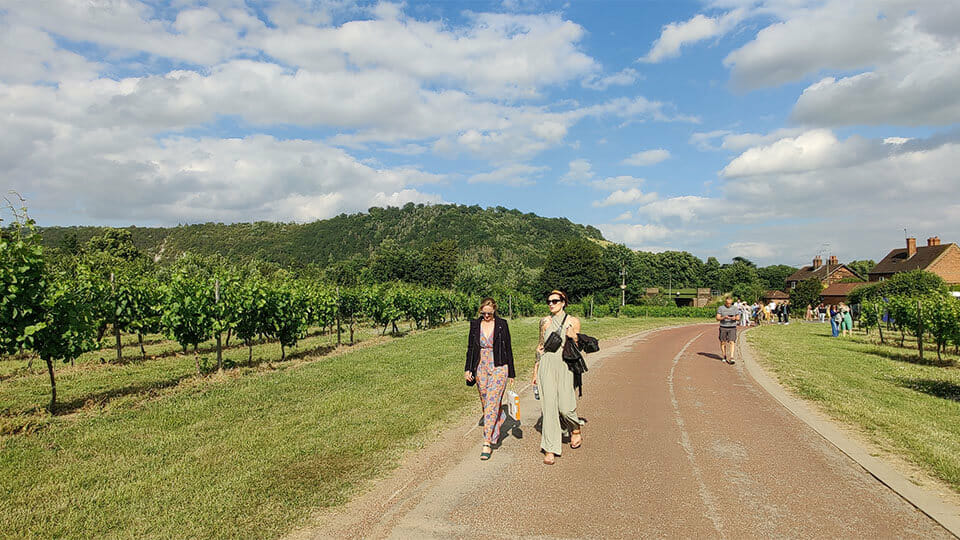 The Denbies team took excellent care of us throughout the day. Starting with a fun “train ride” up to a beautiful viewpoint where we tasted two amazing types of Denbies sparking wines! The view was an incredible partner to the delicious bubbly, along with some very interesting information about the harvesting and fermentation processes involved.